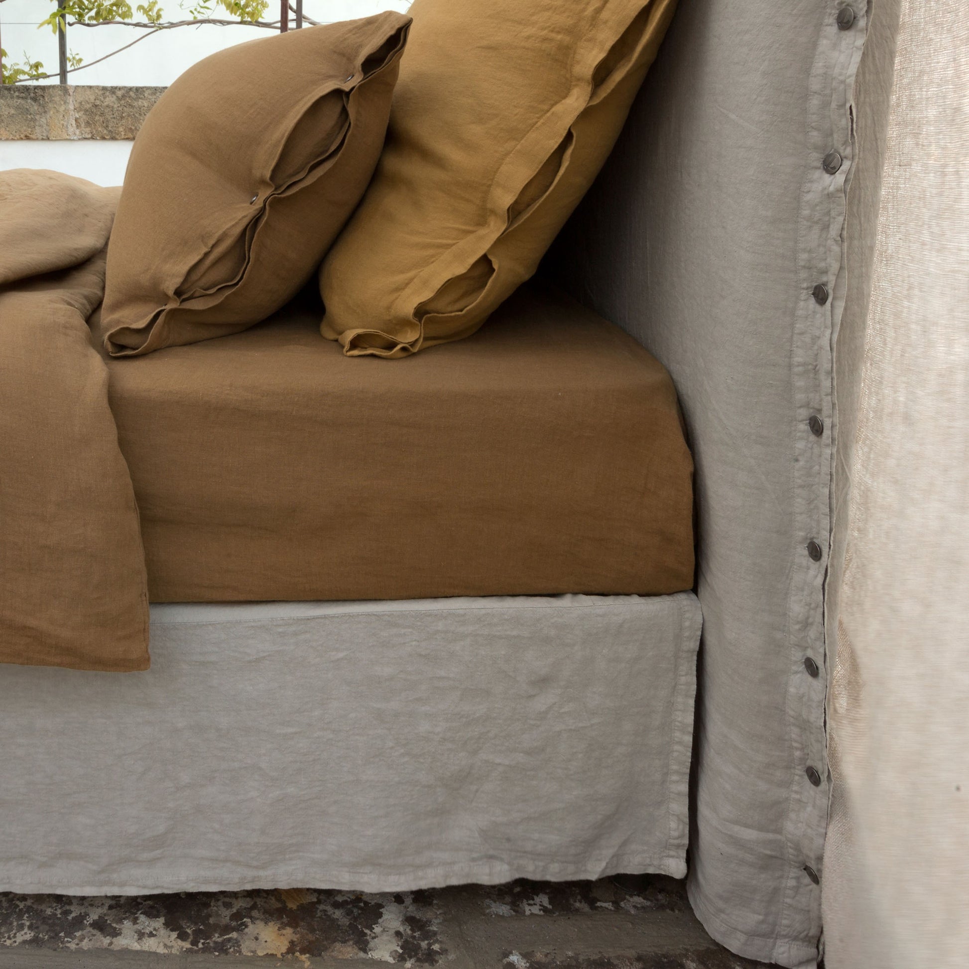 Cache-sommier avec un plateau 100% coton et une jupe 100% toile de lin, teint en pièce pour assurer une couleur homogène.